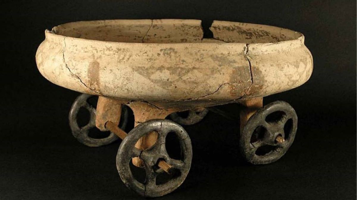 Absolutną sensacją archeologiczną stał się czterokołowy wózek ceramiczny, znaleziony w jednym z największych grobów komorowych. Ten unikatowy artefakt, będący rewelacją w skali europejskiej archeologii wczesnej epoki żelaza, nawiązuje do szeroko rozpowszechnionej symboliki kultowej. W starożytnej Grecji wóz służył do przewożenia ciała wodza na miejsce spoczynku, co sugeruje, że pochowany w Domasławiu człowiek mógł pełnić podobną funkcję w swojej społeczności.
